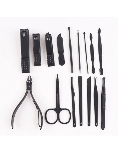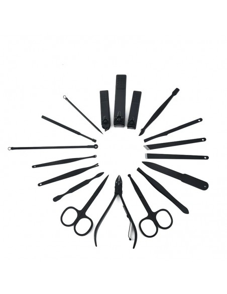Cortaúñas negro de 18 piezas, juego de cortaúñas de belleza