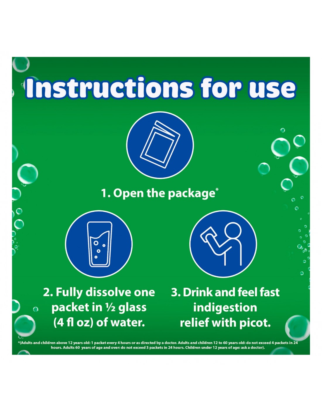 - Cada sobre proporciona un rápido alivio del malestar estomacal.