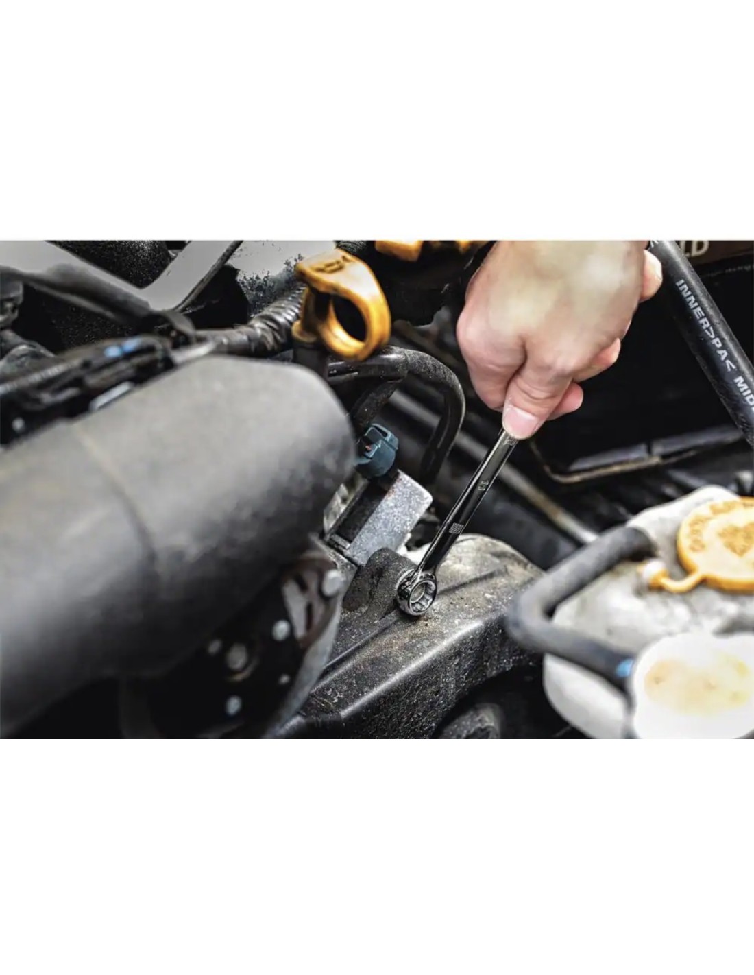 Incluye herramientas para unidades de ¼", ⅜" y ½" de accionamiento, cubriendo una amplia gama de aplicaciones SAE/metric.