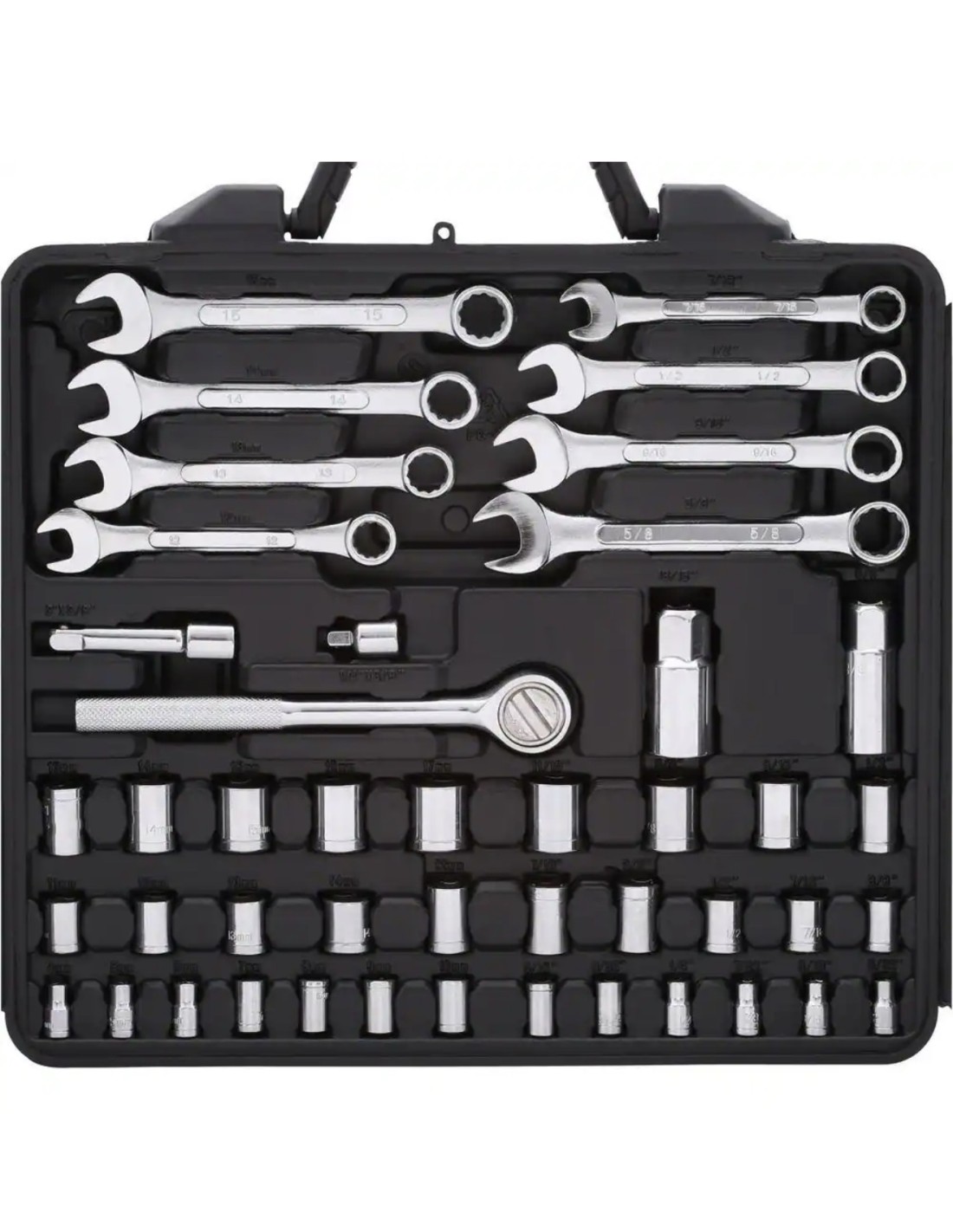 El completo set de herramientas Apollo Tools Mechanics Tool Kit de 101 piezas (modelo DT0006) es ideal para garajes, talleres, aficionados al bricolaje o cualquier persona que requiera un kit versátil que cubra tanto piezas SAE como métricas. Incluye llaves, vasos, destornilladores, alicates y más, todo organizado en una robusta maleta moldeada para fácil transporte y almacenamiento.