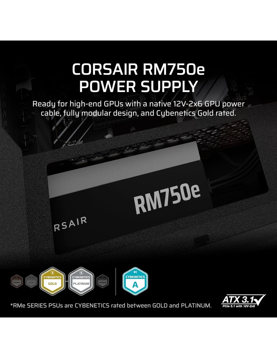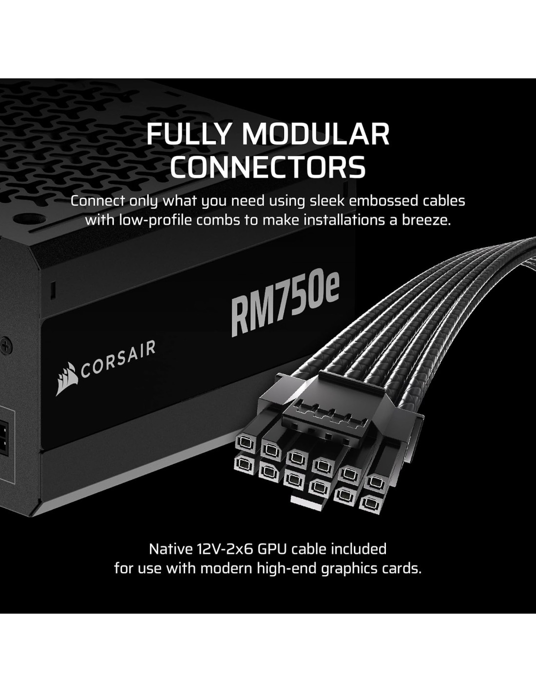 Fuente de alimentación totalmente modular CORSAIR RM750e (2025)750 W, ATX 3.1 y PCIe 5.1
