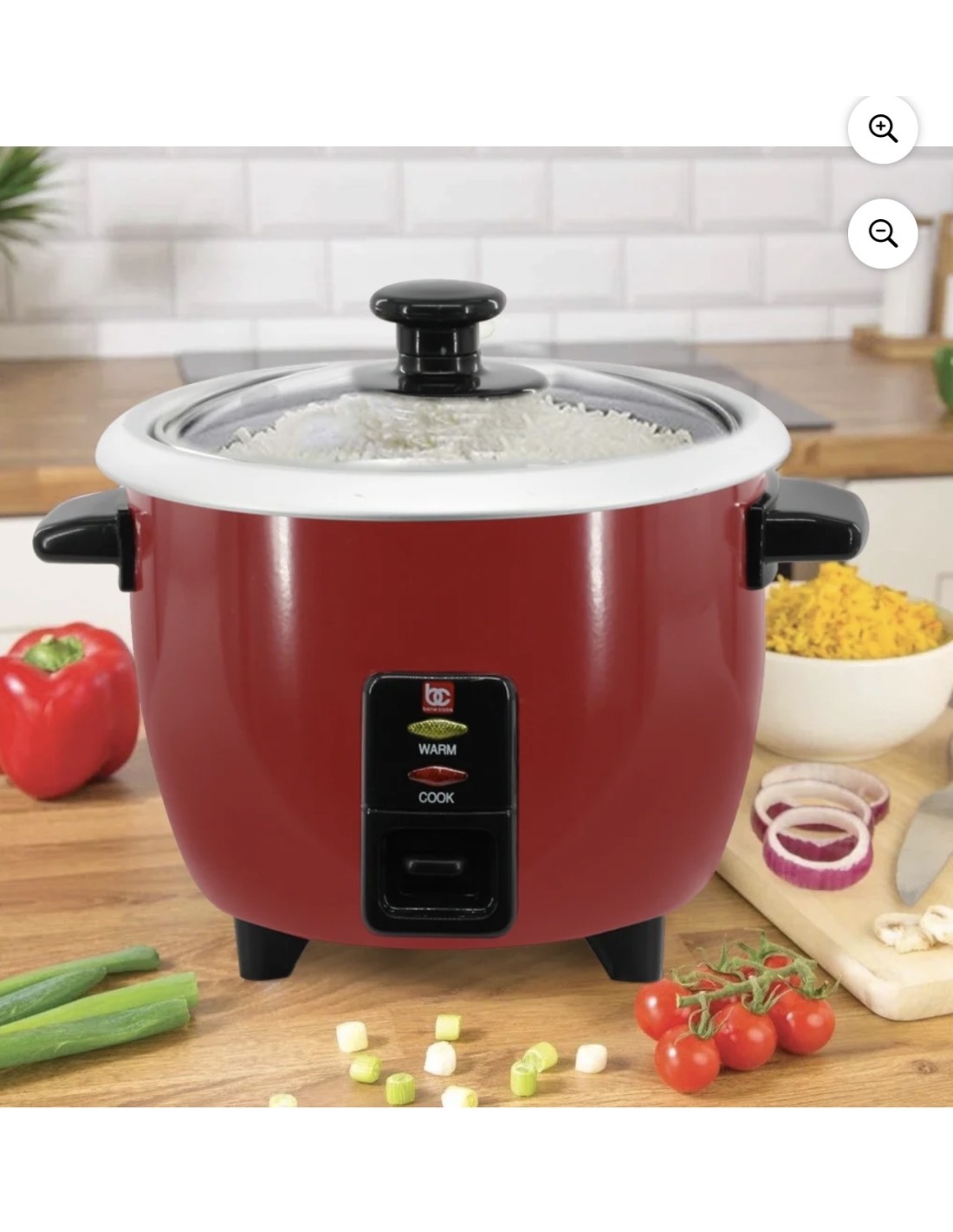 Arrocera eléctrica Bene Casa 6 tazas con bandeja de vapor, olla de aluminio y tapa de vidrio Color rojo