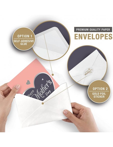 Sobres adhesivos - La parte de sellado del sobre se volverá pegajosa cuando se moje, no se necesita pegamento o pegatinas, cuando termine su escritura, ponga la tarjeta en el sobre y selle, lo que lo hace más privado y oficial.