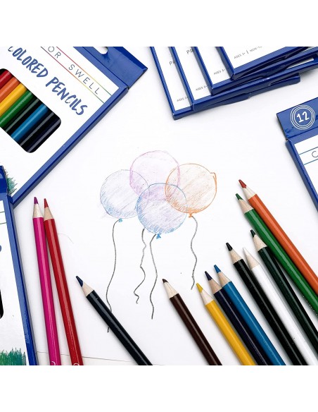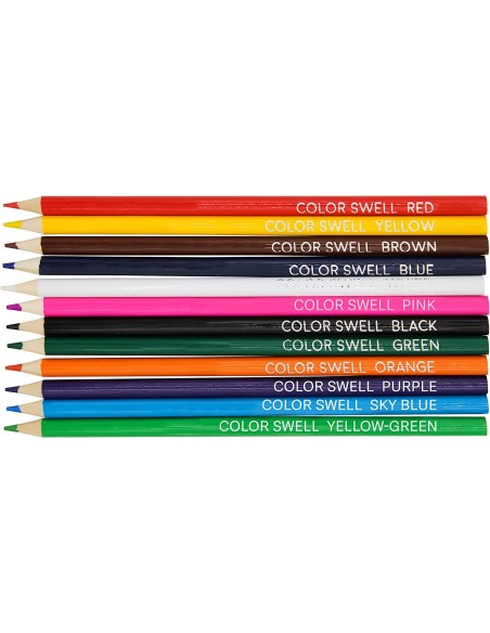 Seguro, divertido y fácil de almacenar: todos los paquetes de lápices de colores a granel de color Swell no son tóxicos, cumplen con las normas ASTM D4236 y EN71, y vienen en cajas resistentes para tu almacenamiento y protección. Los lápices de colores Color Swell a granel son perfectos para niños a partir de 3 años.