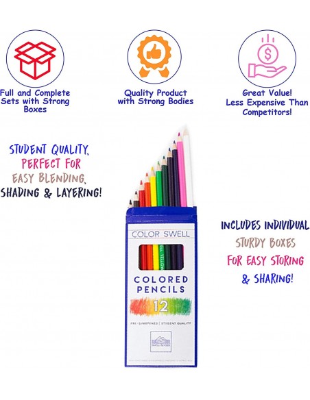 Calidad estudiante y aprobada por profesores para liberar tu creatividad: los lápices de color a granel de Color Swell son de calidad para profesores y económicos. Cada paquete de lápices de colores a granel tiene barriles preafilados de 7 pulgadas que ofrecen una consistencia de coloración suave, ideal para tu estilo de mezcla, sombreado y otras técnicas de dibujo creativas.