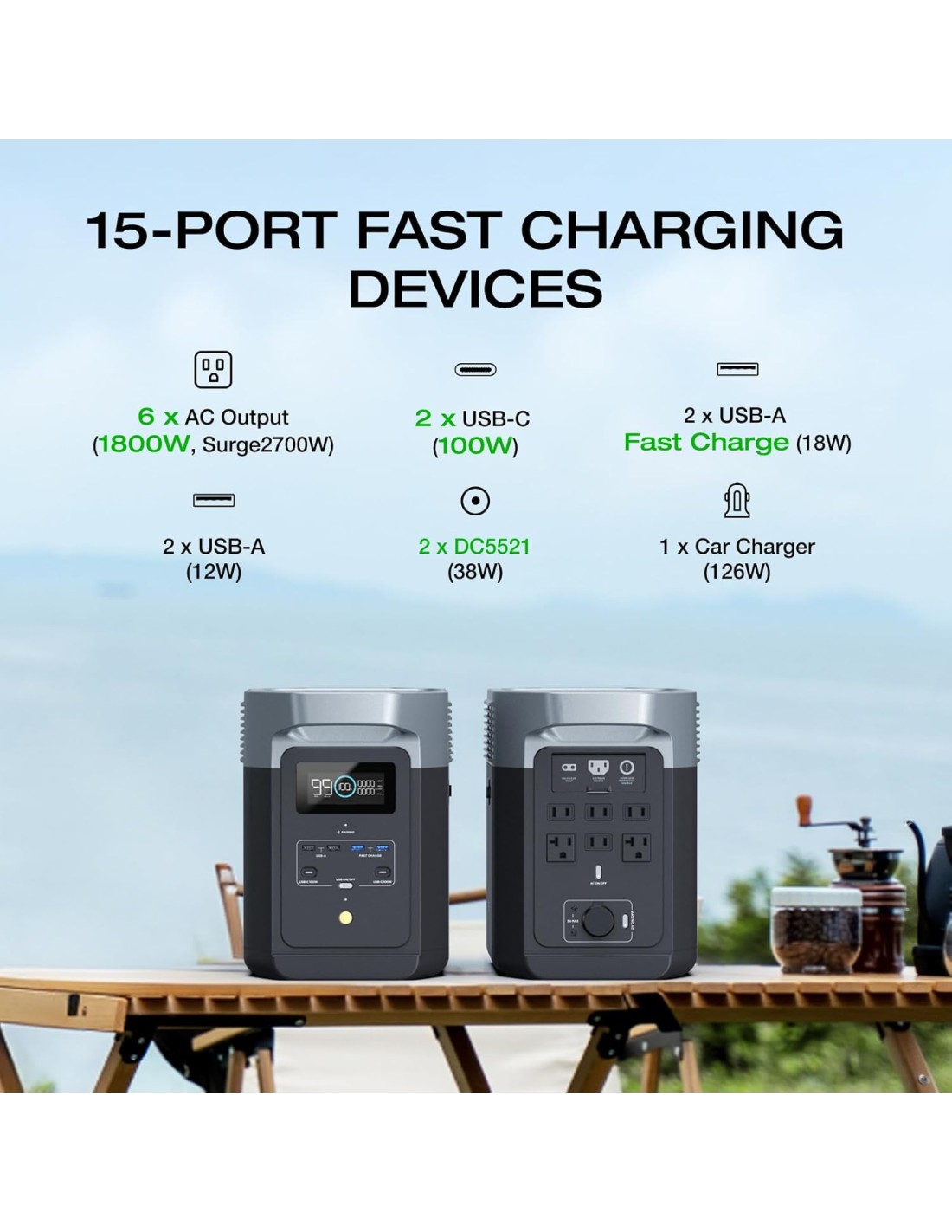 EcoFlow DELTA 2 1024 Wh Bateria y Potencia de salida 1800 W